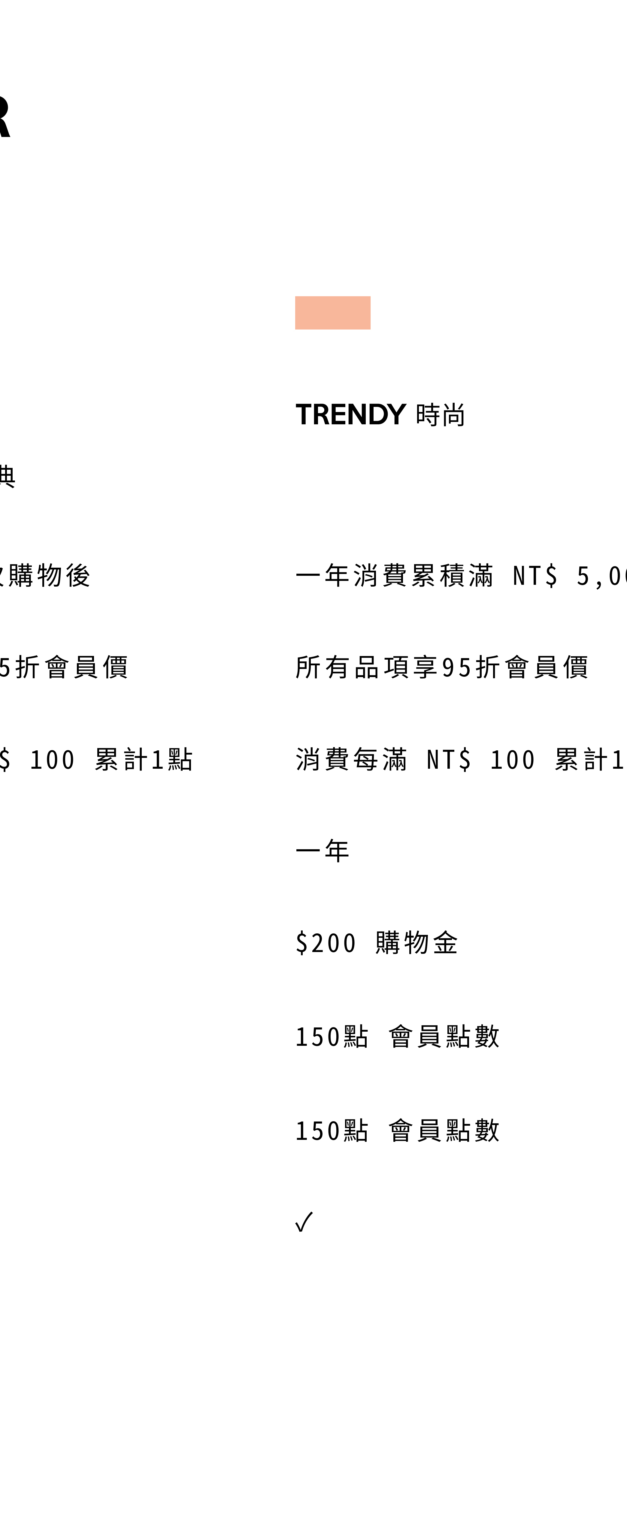 |TRENDY 時尚|:一年消費累計滿 NT $5,000 元(隔年續會同門檻)