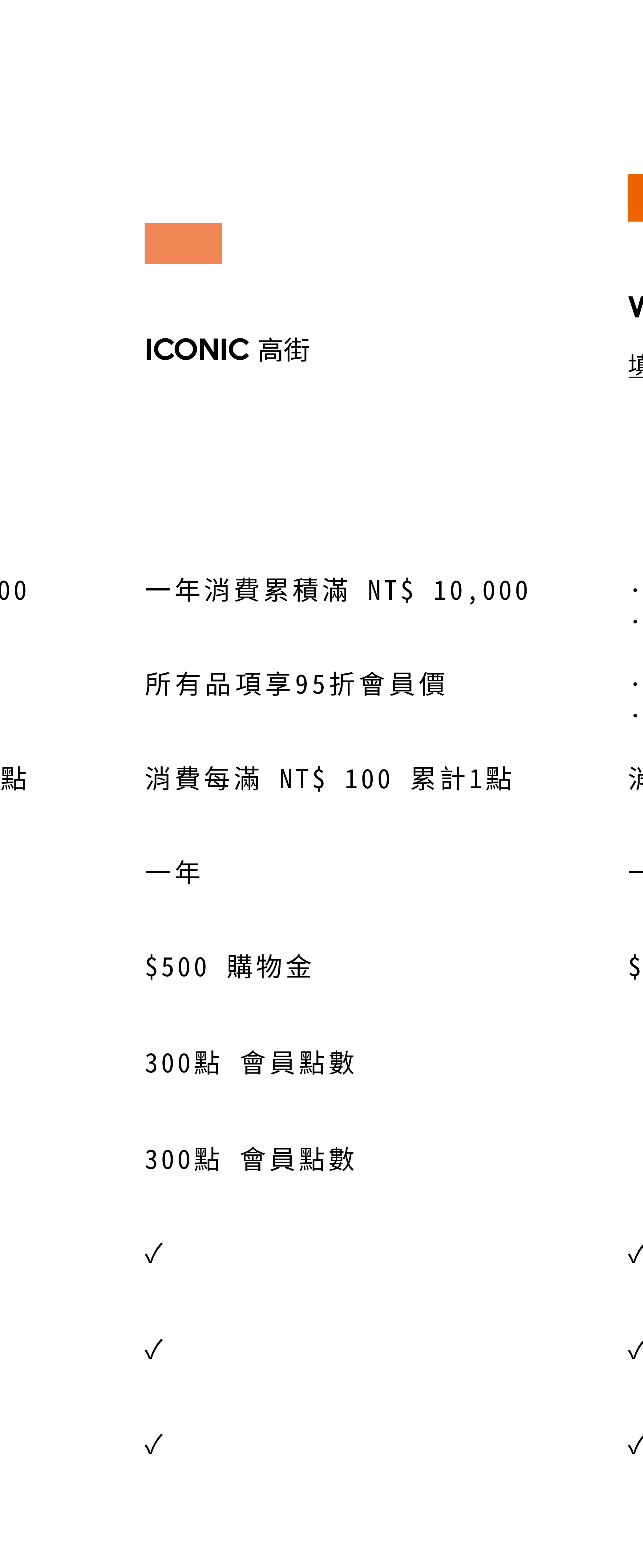 | ICONIC 高街|:一年消費累計滿 NT $10,000 元(隔年續會同門檻)